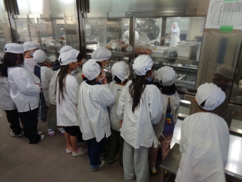 調理場は衛生面から厳密に管理されているので中には入れませんが、外からでも十分に伝わったようで、たくさんの質問も出ていました。