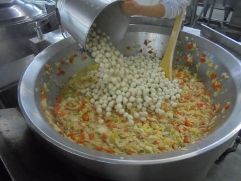 八宝菜のうずら卵も,全クラスにたっぷり行き渡るように,毎回気を付けて配缶してくれています。