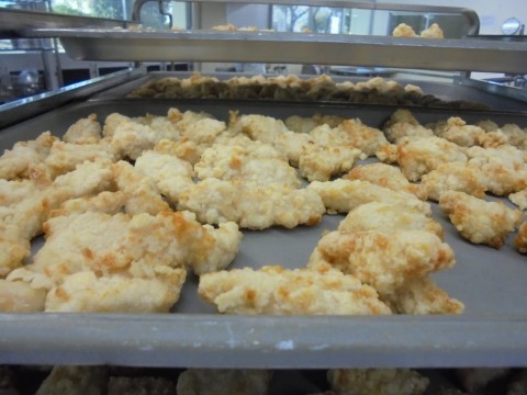 調理員さん手作りの甘酸っぱいたれがしみ込んでおいしく仕上がりました!