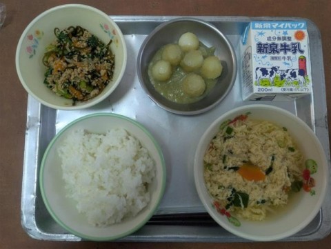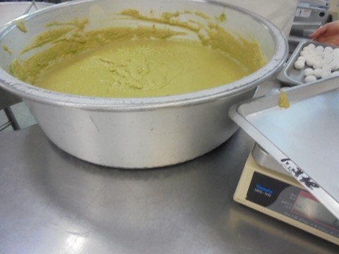 今日の給食では,うらごしした大豆と抹茶をつかっています。