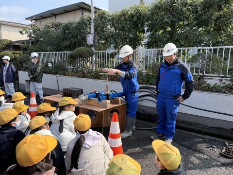 以前メッセージを書いた水道管の埋め込み工事の見学をしました。