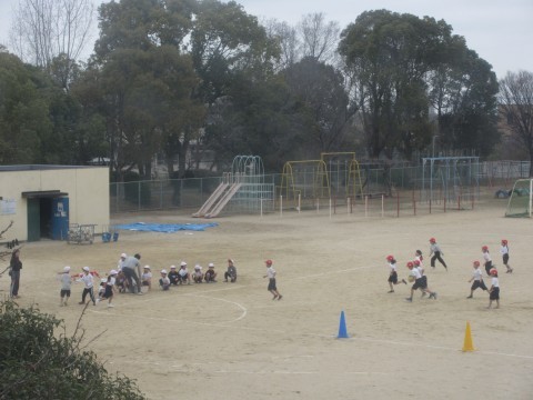 皆で運動場いっぱいに使って走った後は