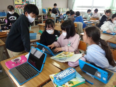 自分たちで決めたテーマについて、調べて、まとめて、相手に伝わるように発表する学習です。