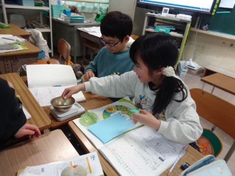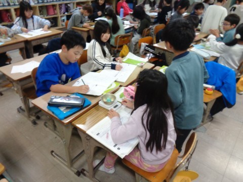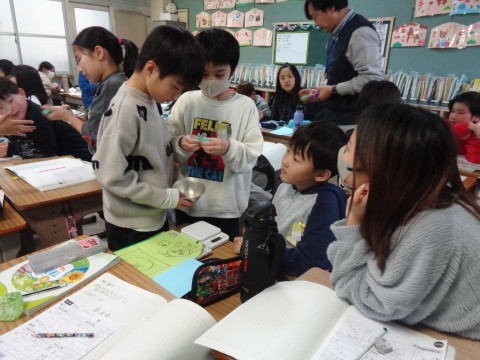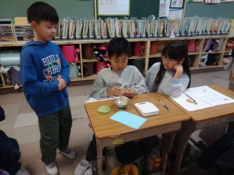 画用紙やねん土を使って調べています。