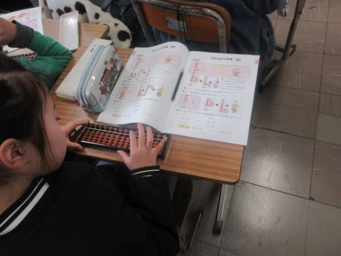 今日はそろばんを使って計算をしています。