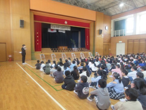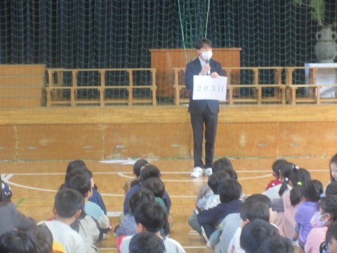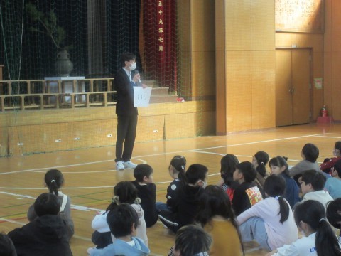 今学期の学校生活をふりかえったり、春休みについてのお話がありました。