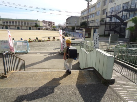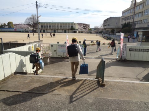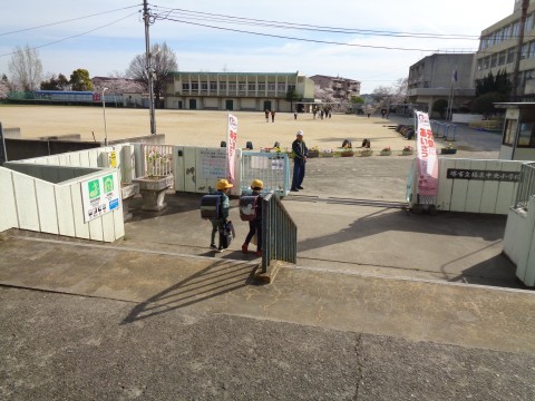 卒業生も、笑顔で挨拶をして中学校へ向かっています。さすがですね。