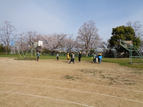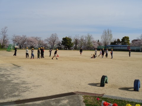 運動場では、新しい学年、新しい学級の子どもと遊ぶ姿がたくさん見えます。