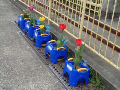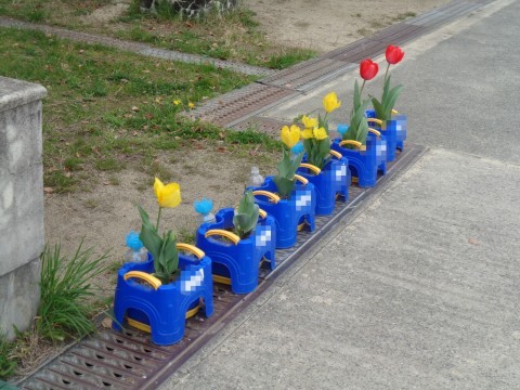 2年生の子どもたちが育ててているチューリップがきれいに咲いています。夕方には花が閉じていますが、朝はきれいに花が開いています!生きていますね。