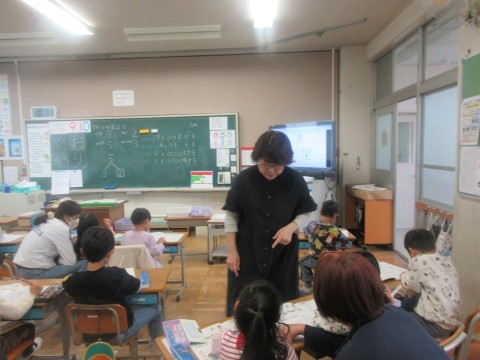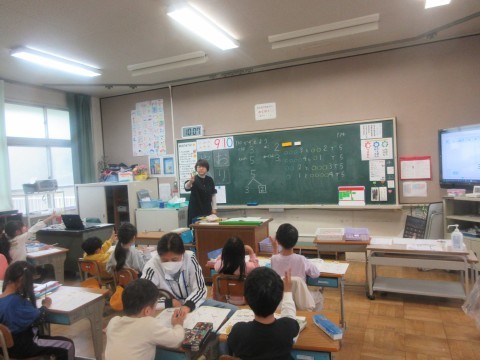 算数 公開日 2026/04/23 更新日 2026/04/23 1年 1年生は算数の授業をしています。今日は数の分解について学習しています。「5は1と?」「5は3と?」難しいですが一生懸命考えていました。