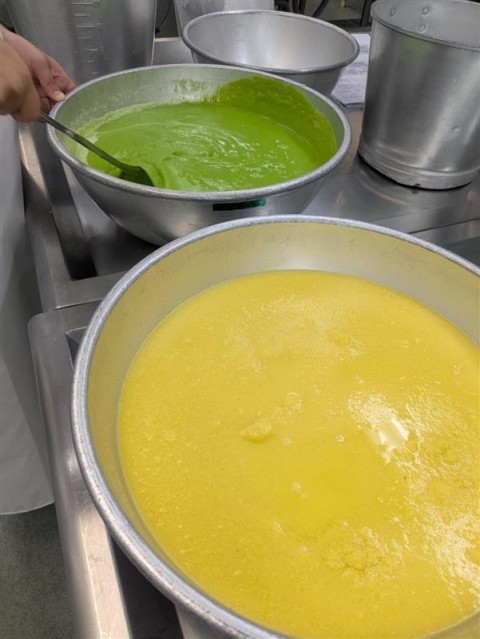 グリーンピースが苦手な子も食べやすいよう、裏ごししたグリンピースとコーンをつかっています。