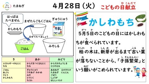 4月28日(火)の献立は