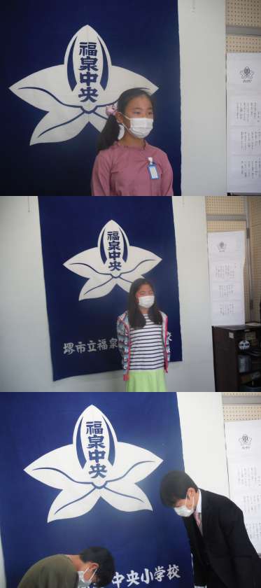 4月19日(月)対面式 公開日 2021/04/19 更新日 2021/04/19 児童会 本来であれば運動場で対面式を行う予定でしたが,今回はテレビ放送となりました。 2年生から1年生へあさがおの種のプレゼントとメッセージがあり,1年生の代表児童はお礼と決意の言葉を述べました。 代表委員さんは,集会での1年生の並ぶ位置を説明してくれました。