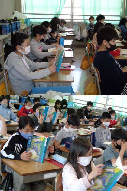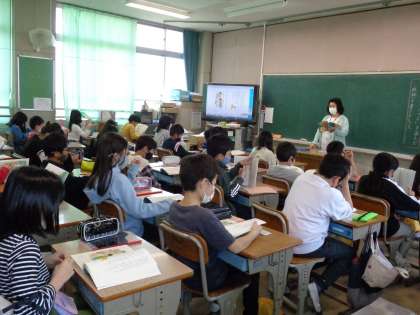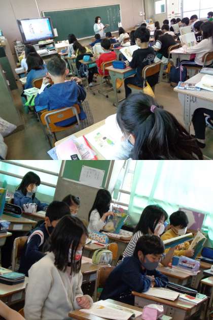 国語『なまえつけてよ』の学習に取り組む1組の児童です。 本文を読んだ後、感想を書いていきます。