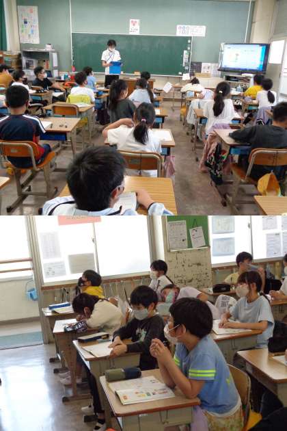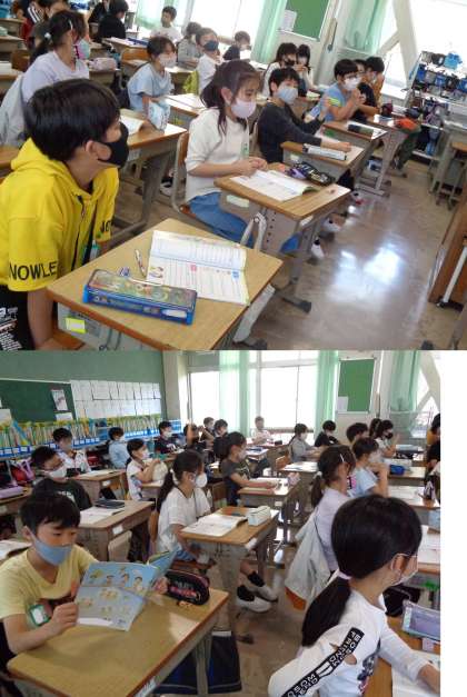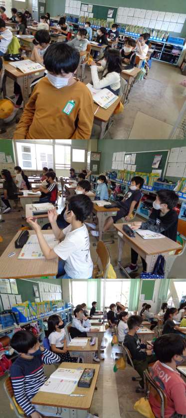 外国語の授業です。 楽しく発音している3組の子どもたちです。
