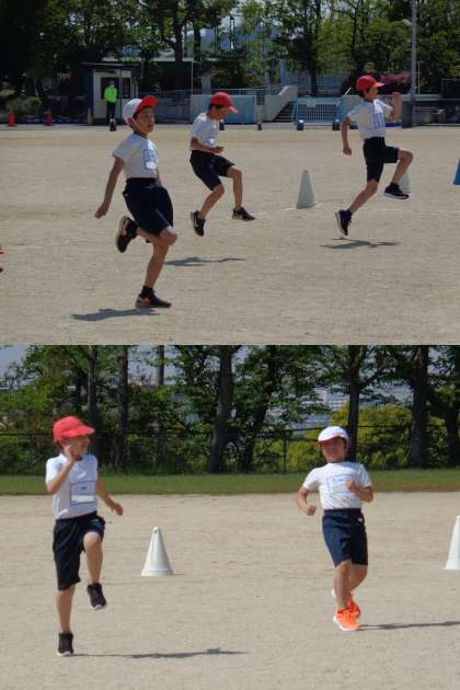 この後は50m走を行いタイムを計測します。しっかりと「もも」を上げて走った成果が表れるといいですね。