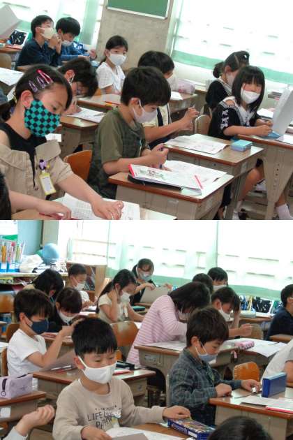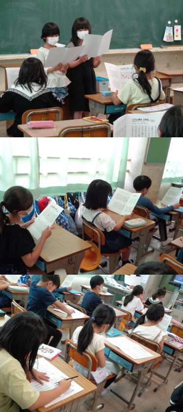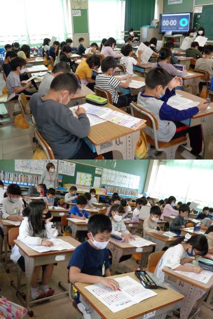 習う漢字を組み合わせてリズムのいい言葉を作り、それを唱えながら覚えていく「リズム漢字」を行っていました。