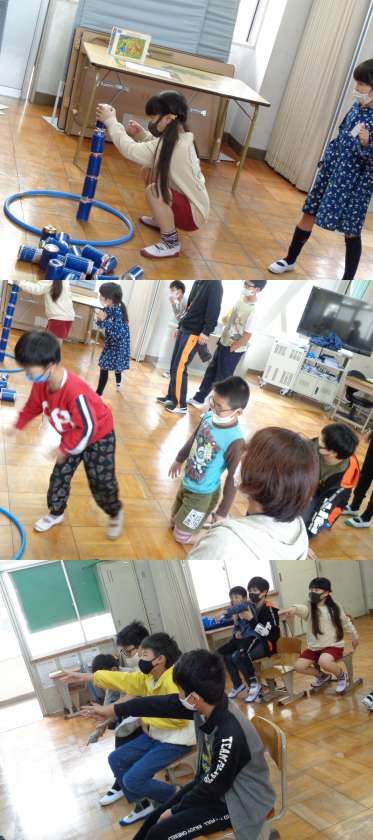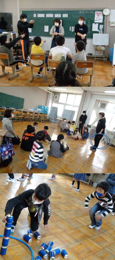朝の会では自立活動として「空き缶積み(空き缶タワー)ゲーム」を行いました。
