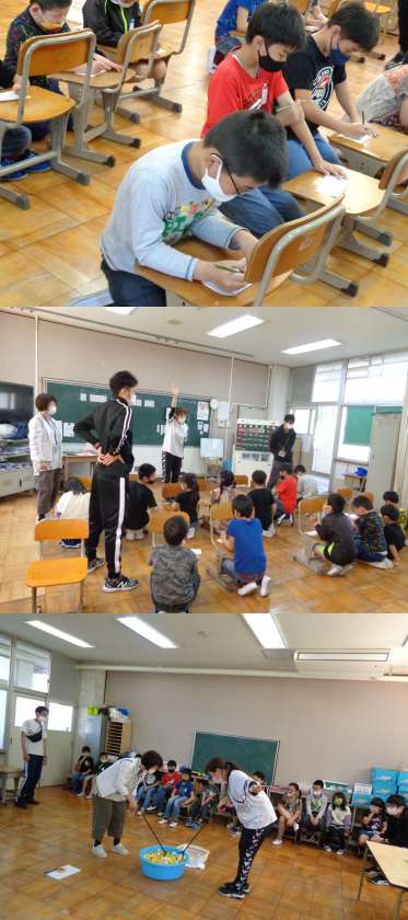 5月6日(木)いずみ学級 公開日 2021/05/06 更新日 2021/05/06 4年 朝の会では「ボールキャッチゲーム」を通じて自立活動を行いました。 自分たちで気づいたところがあれば,その都度ルールを考えていきます。