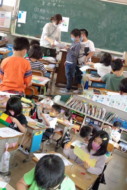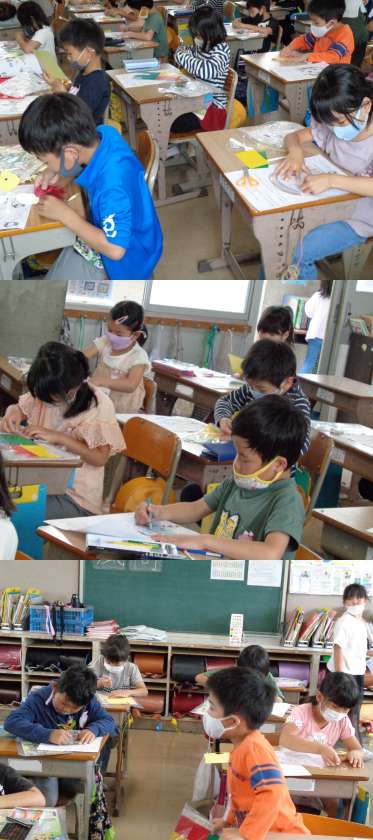 5月11日(火)2年生 公開日 2021/05/11 更新日 2021/05/11 2年 1組は図工の時間に「ひかりのプレゼント」のせっけい図を考えました。 光を通していろんな形や色がどんなふうにうつし出されるか楽しみです。 さあ、どんなうちわが完成するかな。