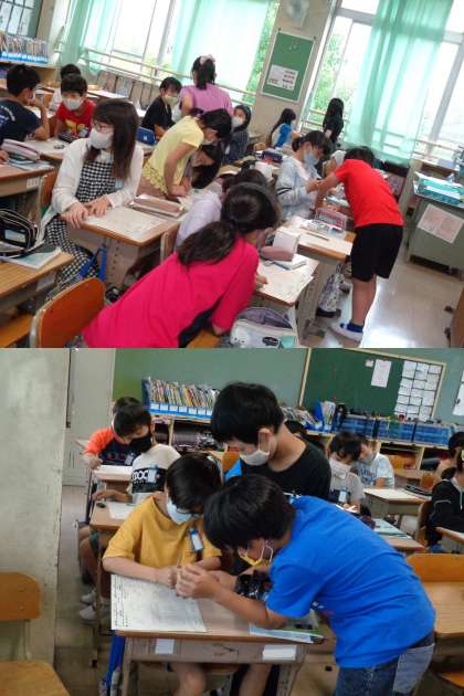 この教室では,子どもたち同士が教え合って理解を深めていました。