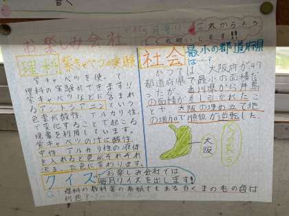 6年生では会社活動が盛んです。一組も二組もたくさんの会社がみんなを楽しませてくれています。会社活動とは,みんなのためにすすんで掲示やイラスト,イベントを企画する自主的な係活動です。