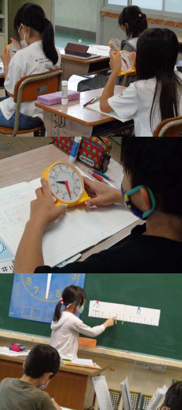 それぞれ3つの教室で「時こくや時間のもとめ方」を考えました。