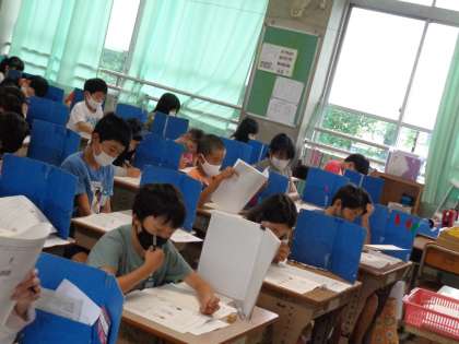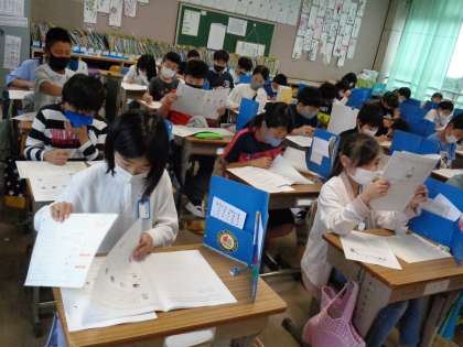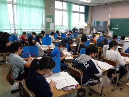 5月27日(木)5年生 公開日 2021/05/27 更新日 2021/05/27 5年 すくすくウォッチの問題にチャレンジしている5年生です。国語・算数・理科そしてアンケートに答えました。 その後,教科横断型の「わくわく問題」に取り組みます。 あまり経験のないテストの形式にとまどう人もいたかな。写真は1組です。