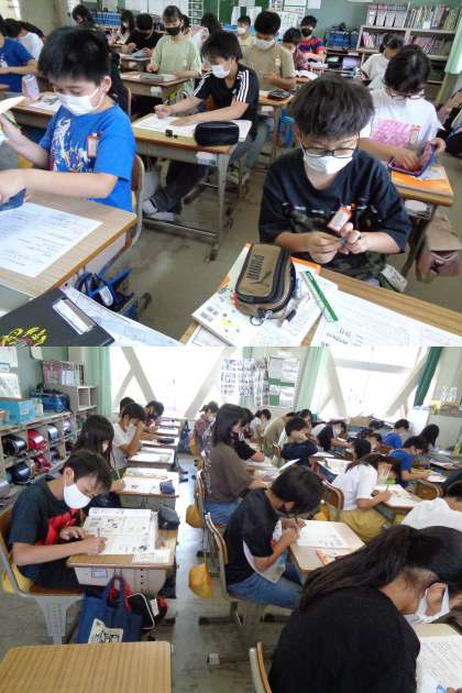 6月1日(火)6年生 公開日 2021/06/01 更新日 2021/06/01 6年 1組の家庭科です。 夏を快適に過ごすための衣服の着方について学習しています。 これからの季節に向かって「放射熱吸収率」などのデータを用いて考えました。