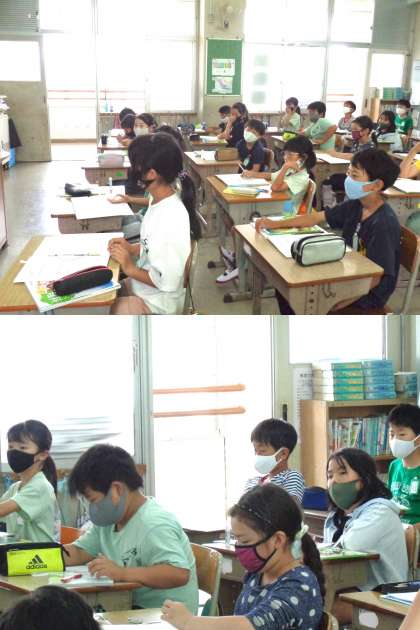 6月2日(水)4年生(3) 公開日 2021/06/02 更新日 2021/06/02 4年 1組の理科です。 「地面のかたむきと水の流れはどんな関係があるのか」を調べます。 地面がかたむいているかどうかの予想を立て、そのあと運動場のサッカーゴールの辺りへ行きました。