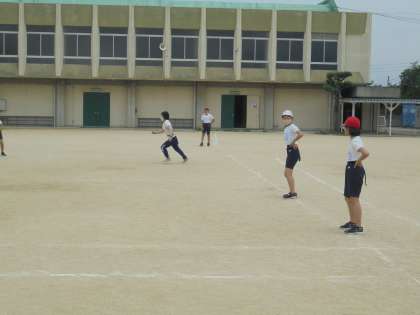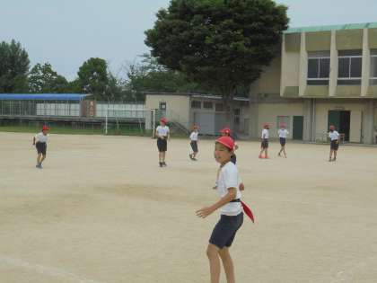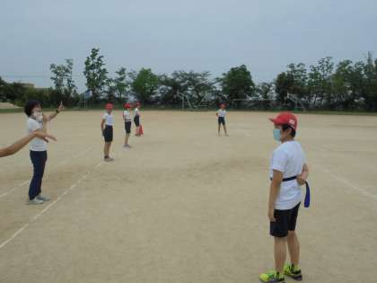 6月2日(水)6年生 「体育のウォームアップです。」 公開日 2021/06/03 更新日 2021/06/03 6年 6年生の体育では来るスポーツテストに向けて,ソフトボール投げの動きにつながる運動として,新聞棒投げやティーバッティング用の柔らかいボールで大きいフォームで投げたり,ボールをはなすポイントと手首の感覚をつかんだりする練習をしました。その前にしっぽ取りをして楽しくウォームアップをしました。その時の様子です。先生も参加していますね。