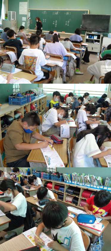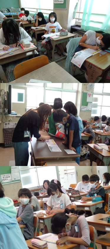 2組の国語です。 時間の初めは,新出漢字の練習です。 「張」「破」などを覚え,担任の先生の点検を受けました。