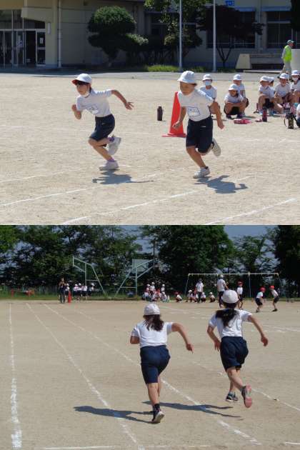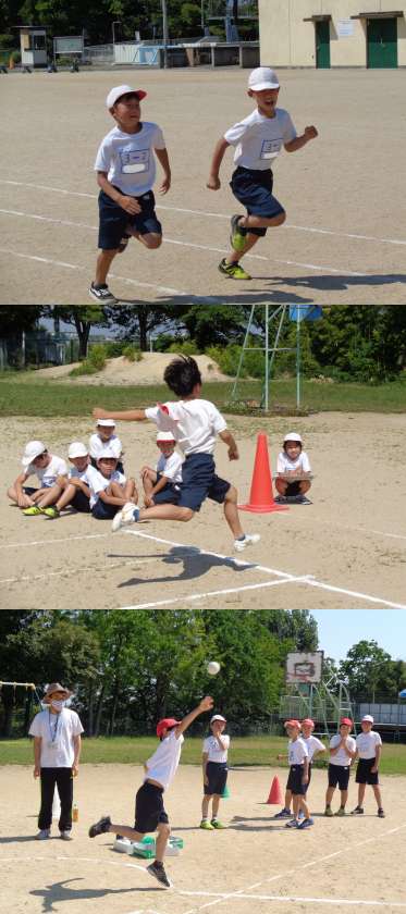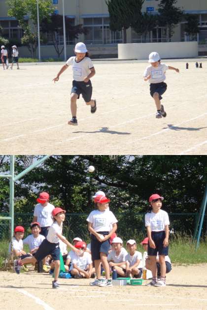 運動場では「50m走」と「ソフトボール投げ」を実施ました。