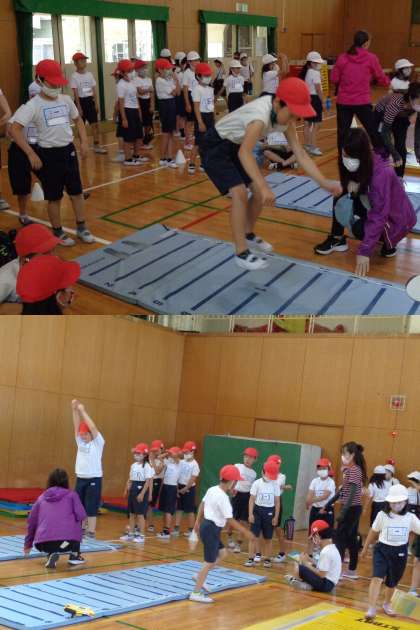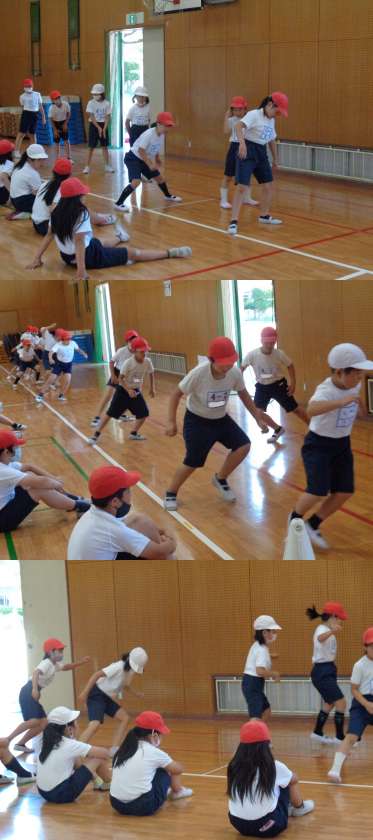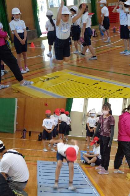 体育館では「立ち幅跳び」「上体起こし」「反復横跳び」です。