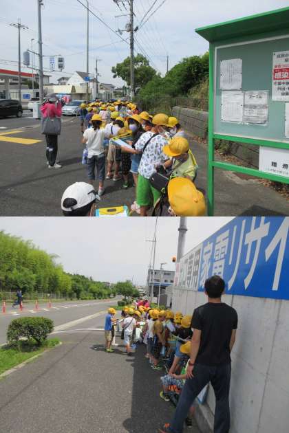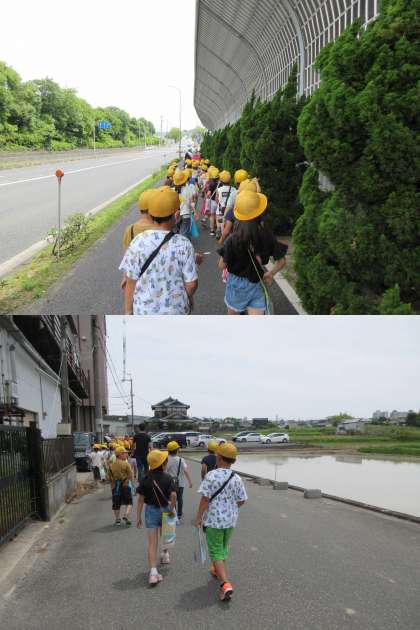 6月11日(金)2年生 公開日 2021/06/11 更新日 2021/06/11 2年 2年生が町探検に出かけました。今日は,高尾方面です。道路沿いを歩いて,見つけたものをプリントに書きました。田んぼの脇を通ったとき,蛙の鳴き声が聞こえていました。次回はどこへ行くのか楽しみです。