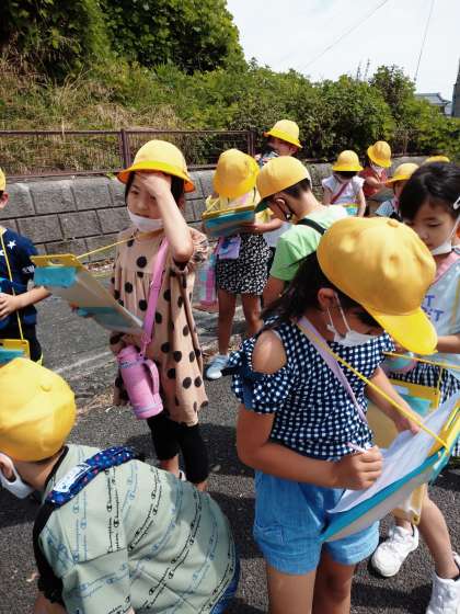 初めての町たんけん。遠足など校外へ出かけることがほぼなかったこともあり,