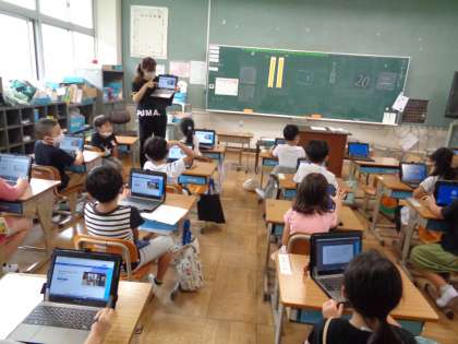 9月9日(木)1年生(2) 公開日 2021/09/09 更新日 2021/09/09 1年 タブレットへのログイン方法もしっかり覚えた3組の子どもたちです。 今後はドリルパークだけでなく,Teamsを利用して活動できるように準備をしています。