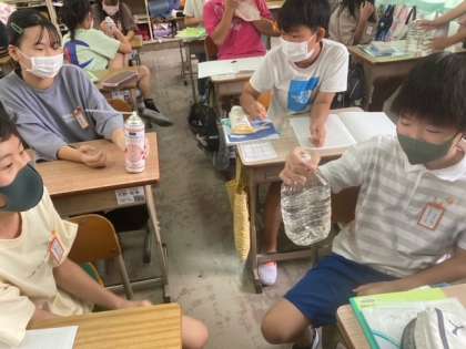 6年生は,理科の水溶液の学習で,炭酸水を作る実験をしました。