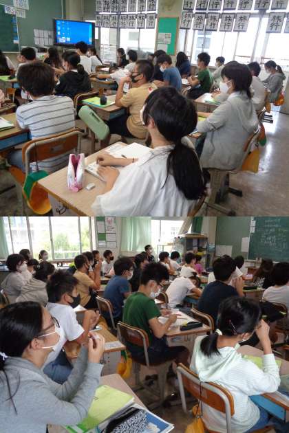 9月14日(火)6年生 公開日 2021/09/14 更新日 2021/09/14 6年 2組の理科の授業です。 水溶液の性質(仲間分け)について学習します。 酸性,中性,アルカリ性それぞれについて考えました。