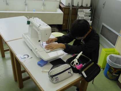 先生が準備してくれた布を使って,ミシンで袋状にぬう活動をしました。