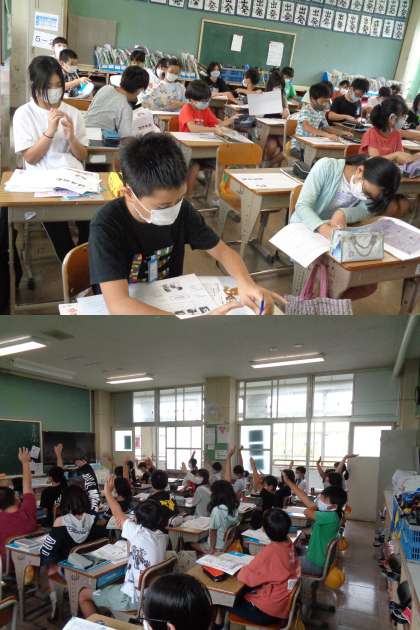 9月16日(木)5年生 公開日 2021/09/16 更新日 2021/09/16 5年 今日の2組の家庭科では「目的に合った選び方,買い方ができるようになろう」というめあてで学習しました。 店で本を買う場合を想定して,どの場面で契約が成立するかを考えます。