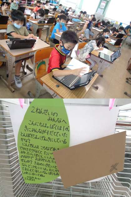 9月28日(火)2年生 公開日 2021/09/28 更新日 2021/09/28 2年 1学期にみんなで育てたとんぼから「いっしょに大空を旅しませんか・・・」というお手紙がきました。 2年生は自分の行きたいところを絵に描いて教えようと思います。写真は1組の様子です。