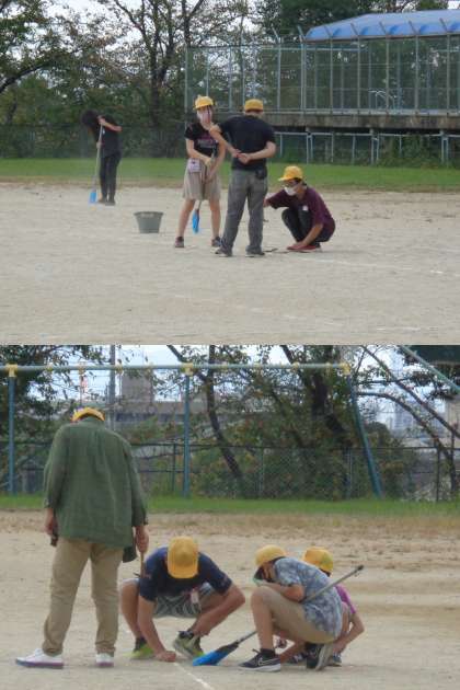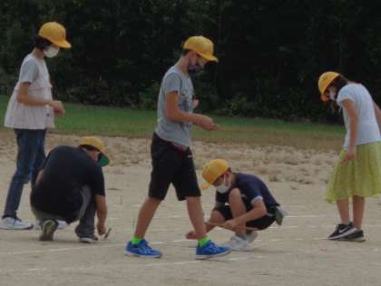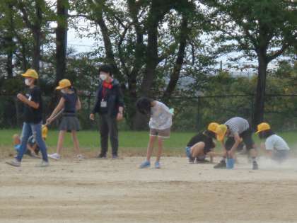 今月末の体育参観に向けて,ポイントを打ったり,見えにくくなっている運動場のラインをきれいに掃いてくれました。