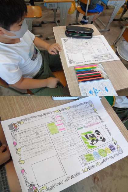 王子動物園と防災センターの両方の記事を書いていますが,子どもたちはやはりパンダの印象が強かったのでしょうか・・。パンダのイラストを描くことに一生懸命でした。