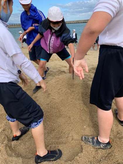 貝拾い&山作り・・・に夢中の子どもたちです。