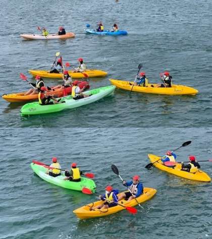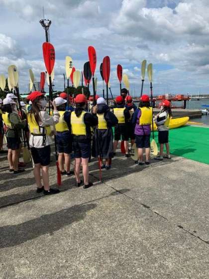 パドルの使い方などを教えていただきました。さあ,上手に乗ることができるかな。