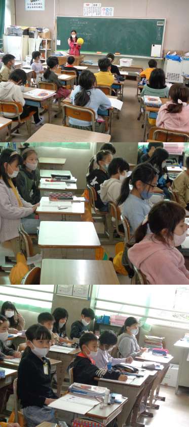どこから見ても円に見える形を「球(きゅう)」ということを学びました。 またその特徴を考えました。