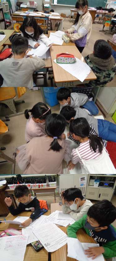 「えがおのひみつ たんけんたい」の発表原稿の仕上げを行っていました。