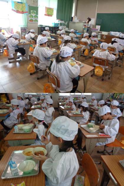 1組の給食中の様子です。