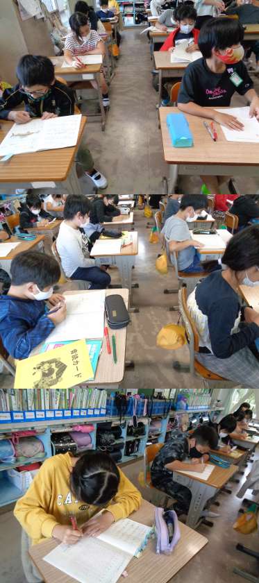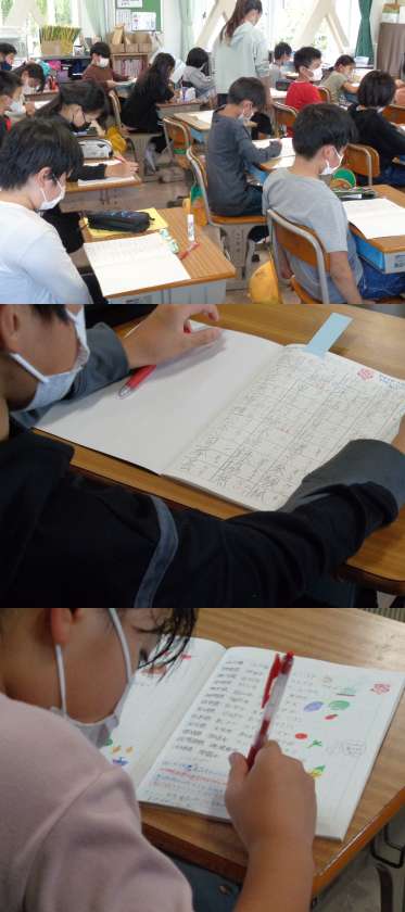 10月26日(火)4年生(2) 公開日 2021/10/26 更新日 2021/10/26 4年 2組の5時間目は「家庭学習のいいところ・まねしたいところを見つけよう!」というめあてで,友だちの家庭学習ノートを順番に回しながら,工夫されている点などを見つけていきました。中央学びンピックに向けて良いノートづくりができればいいですね。